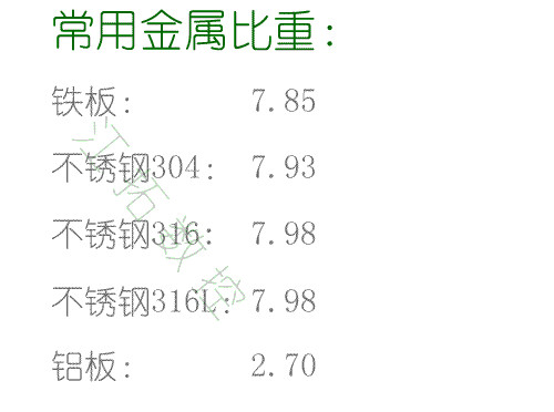 冲孔网重量计算器 >>冲孔网常用板材金属比重表