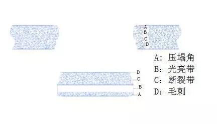过大间隙形成带有较大卷边和边缘撕裂的孔,令剖面稍微有一薄边缘突出。太小的间隙形成带稍微卷边和大角度撕裂,导致剖面或多或少地垂直于材料表面。
